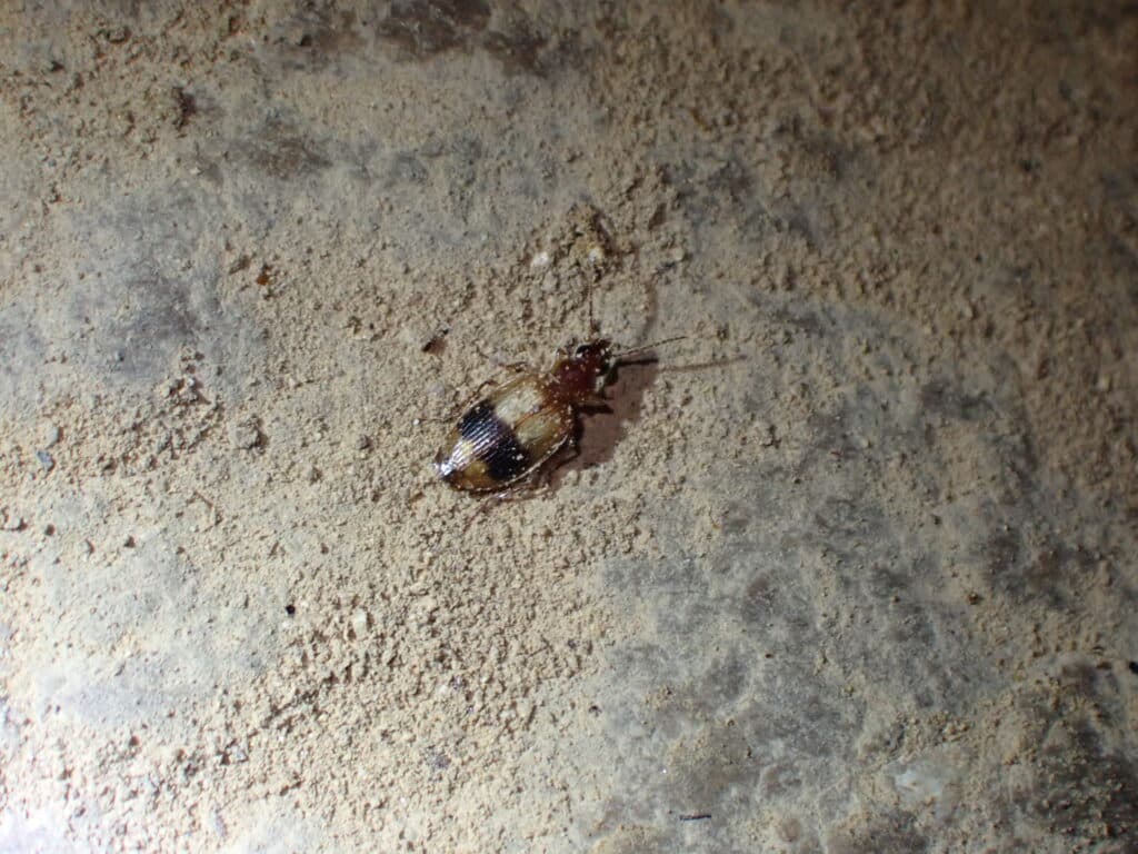 固まった砂地の上でゴミムシのような甲虫の一種も見つけました。こちらも、隠れ入るところがほとんどありませんでしたが、近寄っても特に急いで逃げるでもなく、じっとしていました。