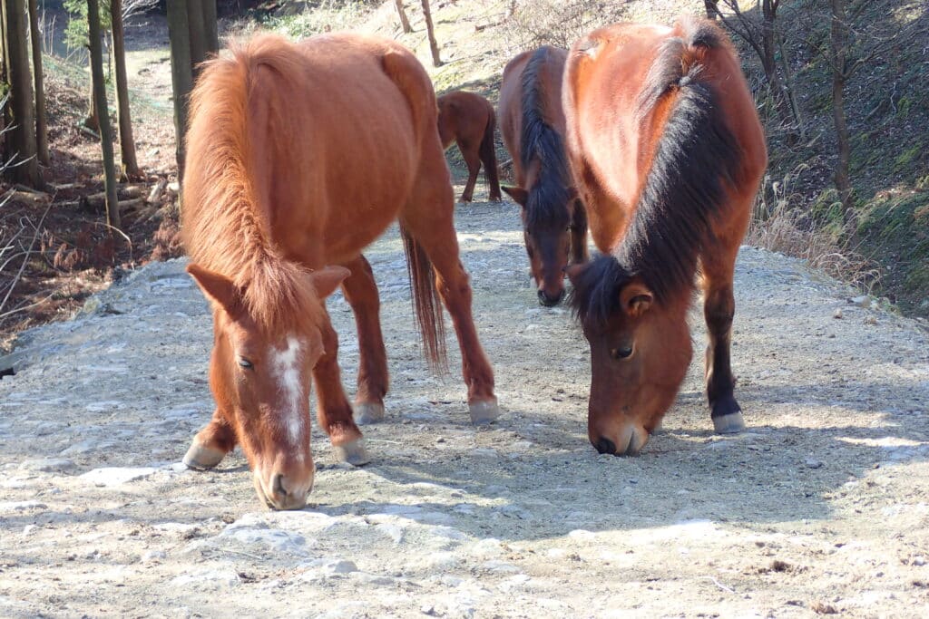 家畜のウマは、ノウマの亜種でヨーロッパに生息していた絶滅亜種であるターパン E. ferus subsp. ferus から改良されたと考えられてします。ちなみに、ターパンやモウコノウマはがっしりとした体型の小型のウマであり、よく写真や映像などで目にする草原を走るサラブレットのような大きなウマは、すべて家畜種であり野生種には存在しません。