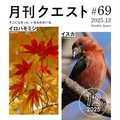 東京のデジタル版野生生物目録「東京いきもの台帳」づくりに参加しよう!クエストを達成すると、東京の野生生物にちなんだプレゼントに応募できます。(アプリのホーム画面のバナーから参加登録を行なってください。)