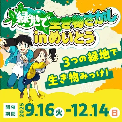 名古屋市名東区の3大緑地(猪高緑地、牧野ケ池緑地、明徳公園)で、いきもの探しに挑戦しよう!多くの自然が残る名東区で、いきもの探しを楽しみながら緑を満喫しませんか。